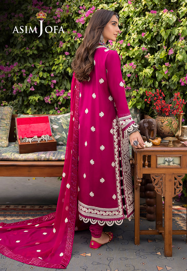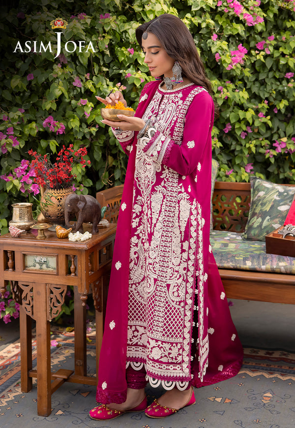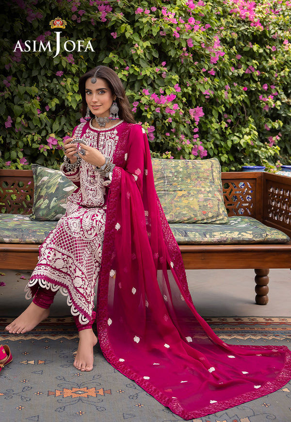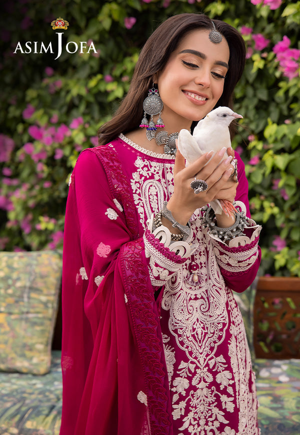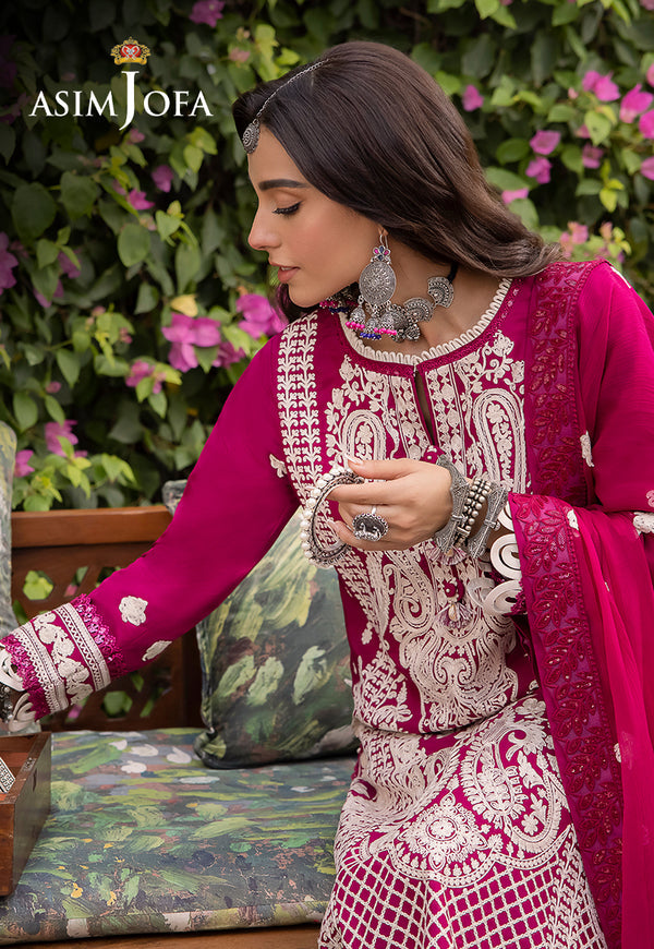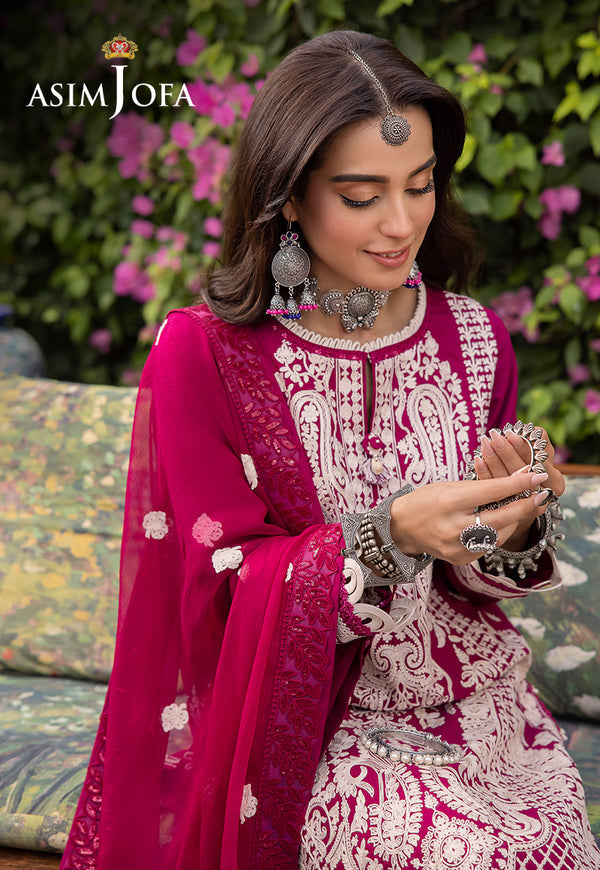 In this mesmerizing magenta attire. Aari Taanka, painstakingly curated in creamy white threads, adorns the canvas like whispers from the past. Each stitch is a note in a narrative that transcends time. The embroidery isn't just decoration, it's a tapestry woven with ancestral wisdom and artistic brilliance. The gorgeously embroidered chiffon dupatta drapes like an ethereal shroud of history, while the dyed pants ground the ensemble in modernity. Step into a world where threads don't just adorn, they narrate the stories of those who came before.