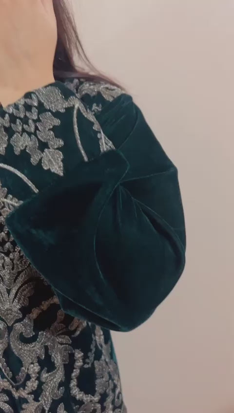 This ensemble effortlessly blends traditional charm with contemporary style. Whether it's a festive celebration or an evening event, "Elegance in Velvet" promises to make a statement. Elevate your style with this stitched masterpiece that captures the essence of timeless elegance.