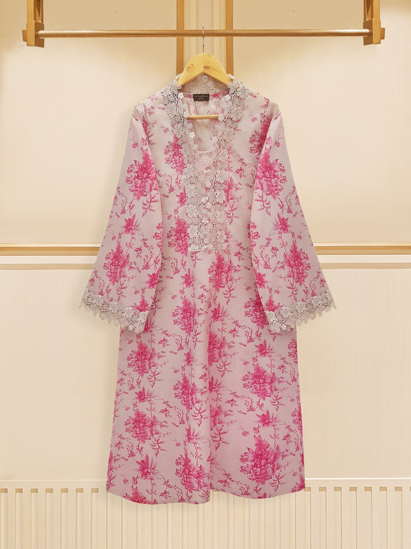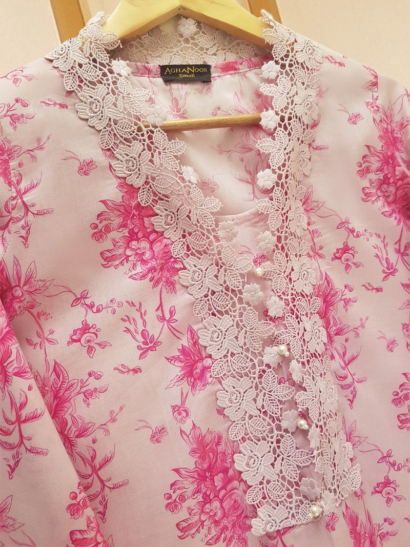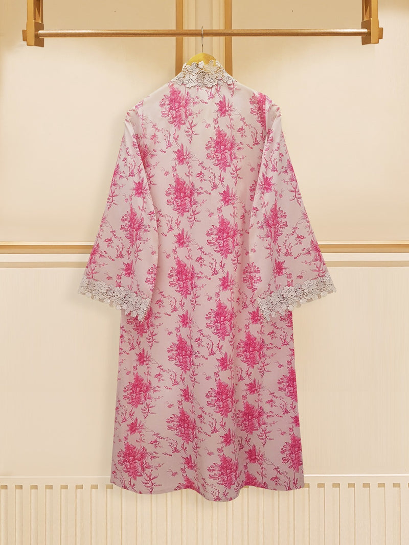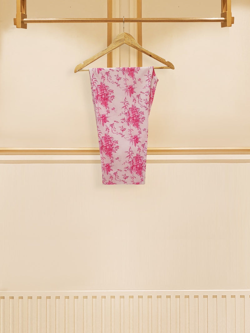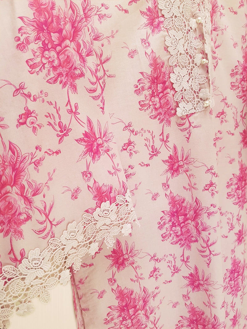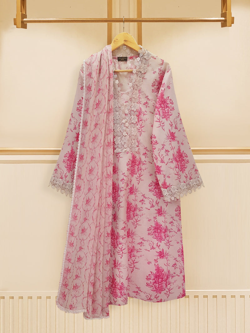 3-Piece Digital Printed Cambric Suit in Pink and White