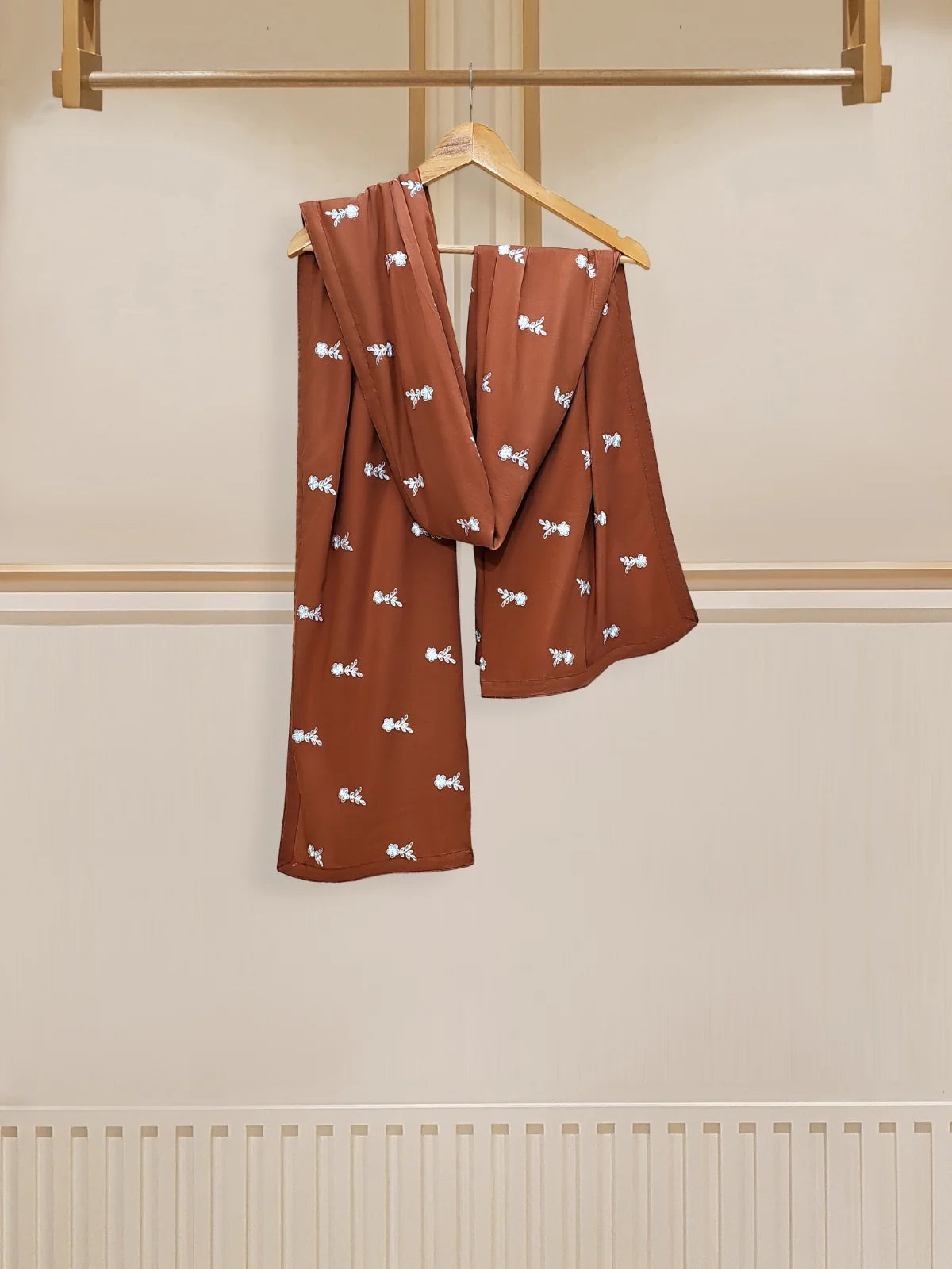 Introducing our elegant embroidered chiffon shirt with pants & dupatta a perfect choice for those who appreciate intricate detailing and graceful style. Crafted from high-quality chiffon fabric, this shirt offers a lightweight and luxurious feel, allowing you to feel comfortable and chic throughout the day. The set comes with matching pants which enhances the overall look and adds a touch of finesse to your outfit.