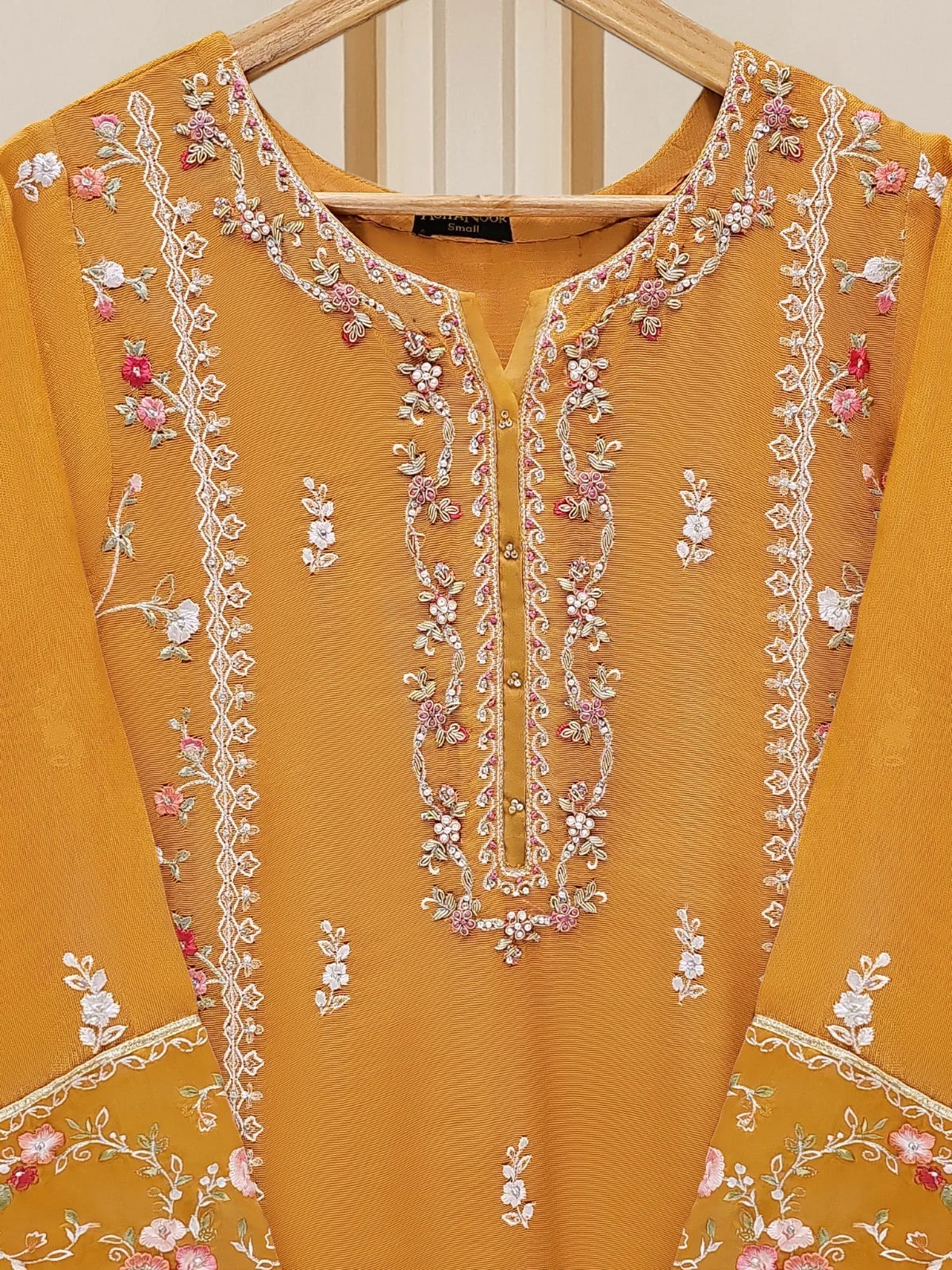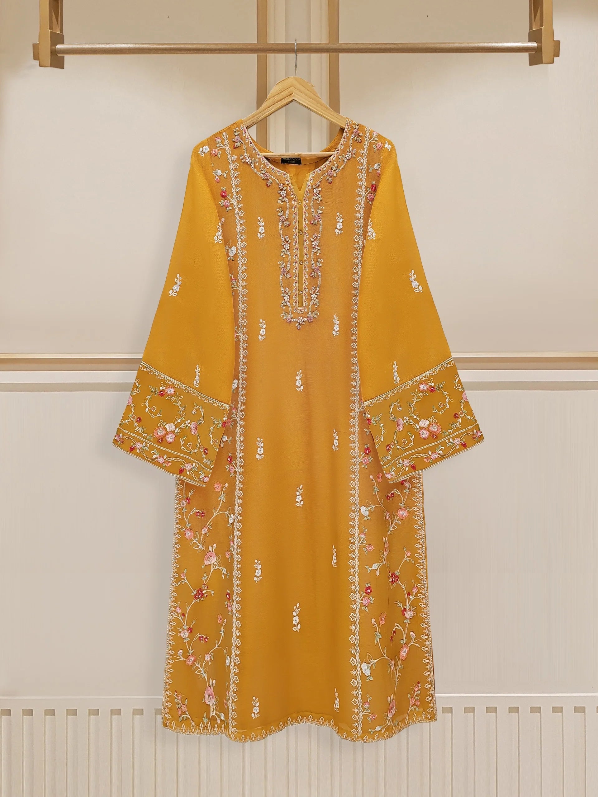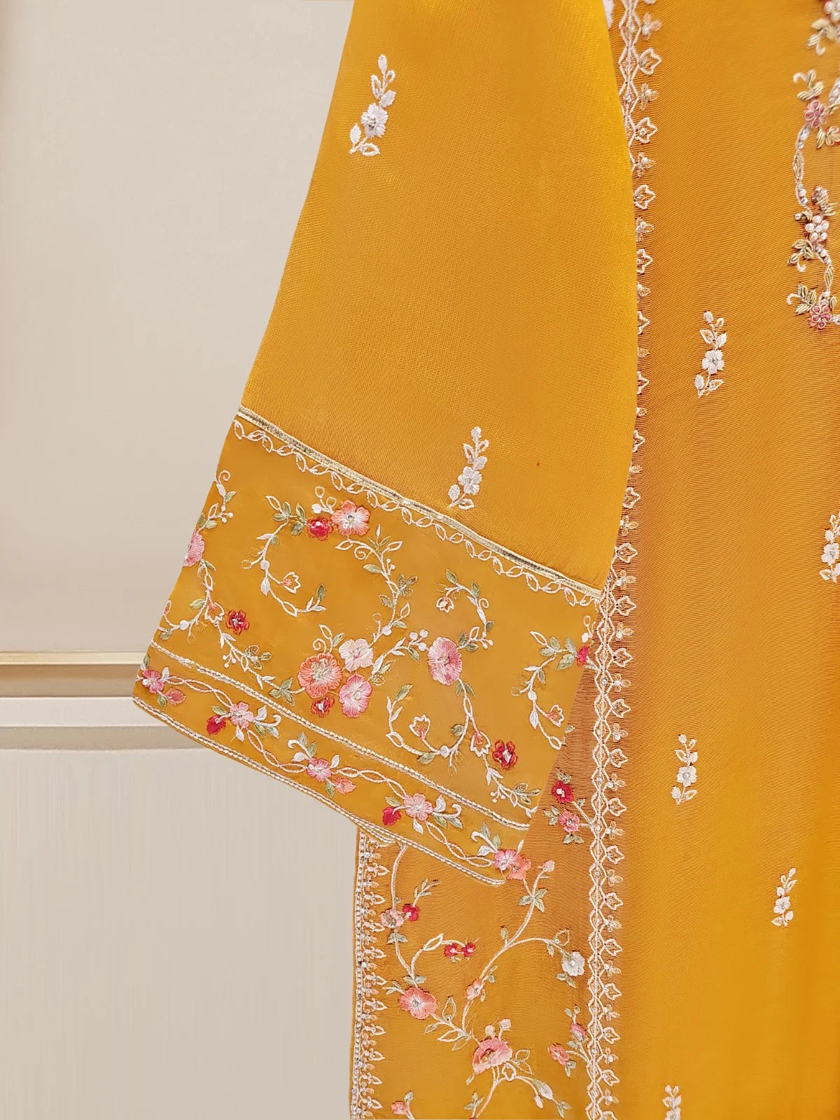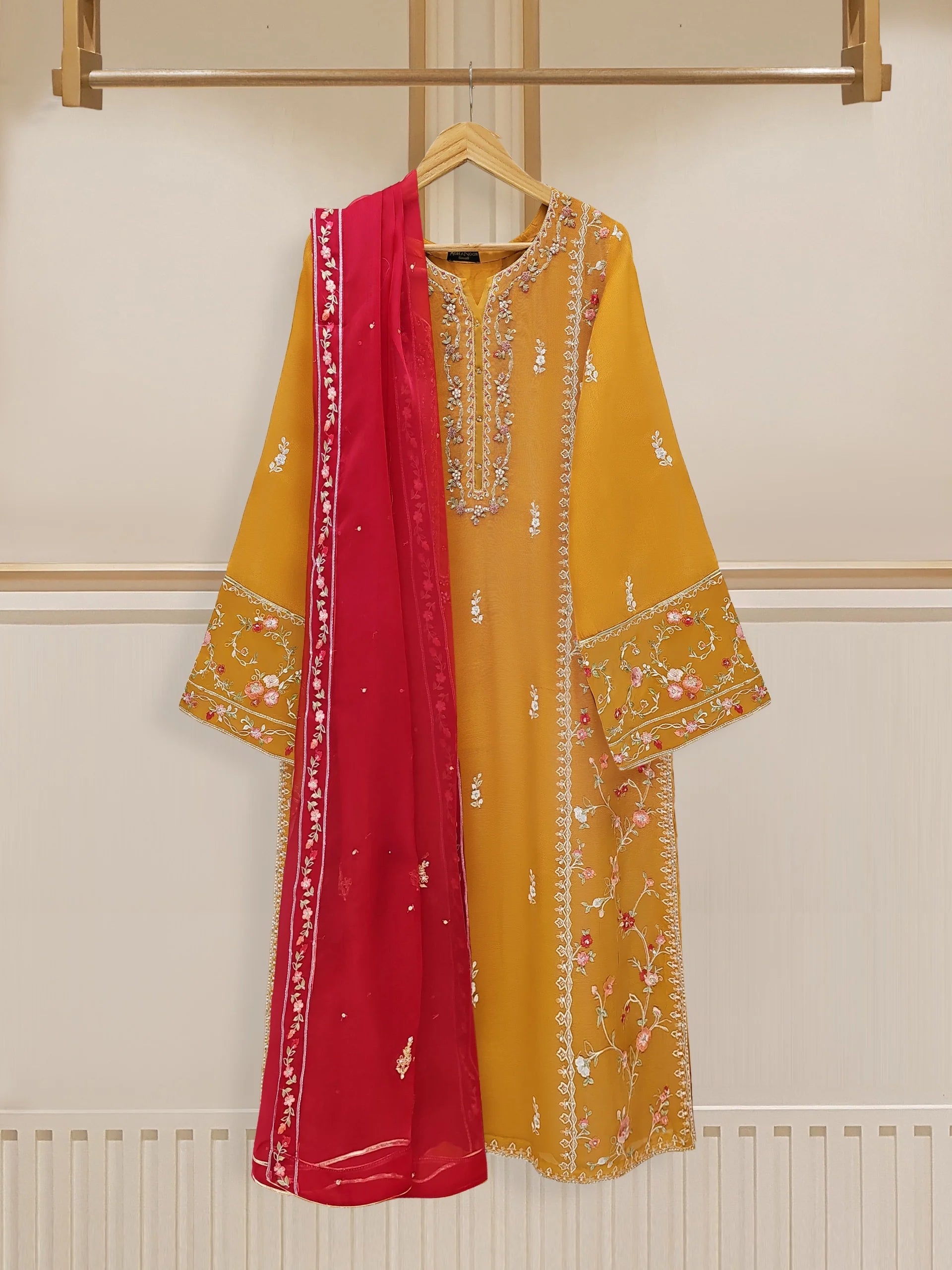 Introducing our elegant embroidered cotton net shirt with pants and dupatta a perfect choice for those who appreciate intricate detailing and graceful style. Crafted from high-quality cotton net fabric, this shirt offers a lightweight and luxurious feel, allowing you to feel comfortable and chic throughout the day. The set comes with a matching dupatta and pant which enhances the overall look and adds a touch of finesse to your outfit.