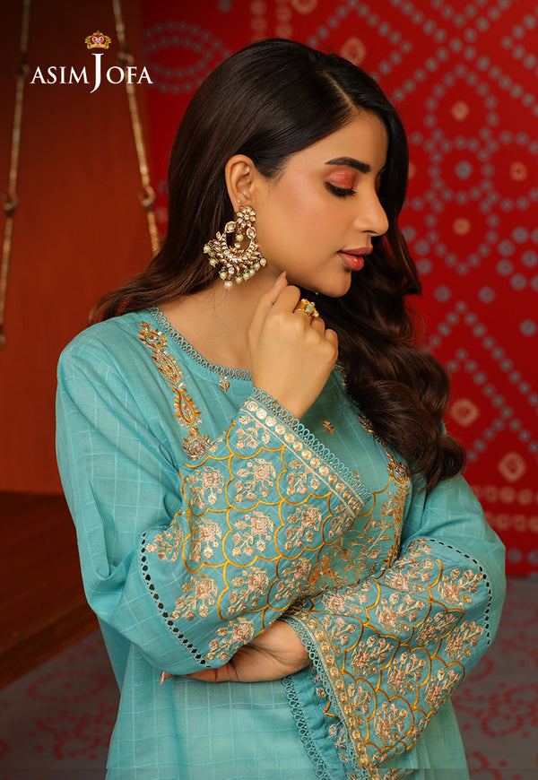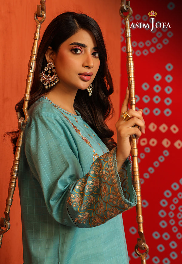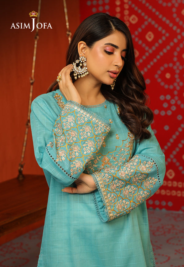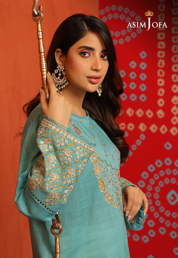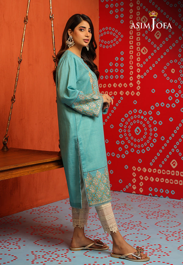 This tunic adorned with threadwork, embroidered neckline, and borders on sleeves, bringing a delightful touch of sophistication.