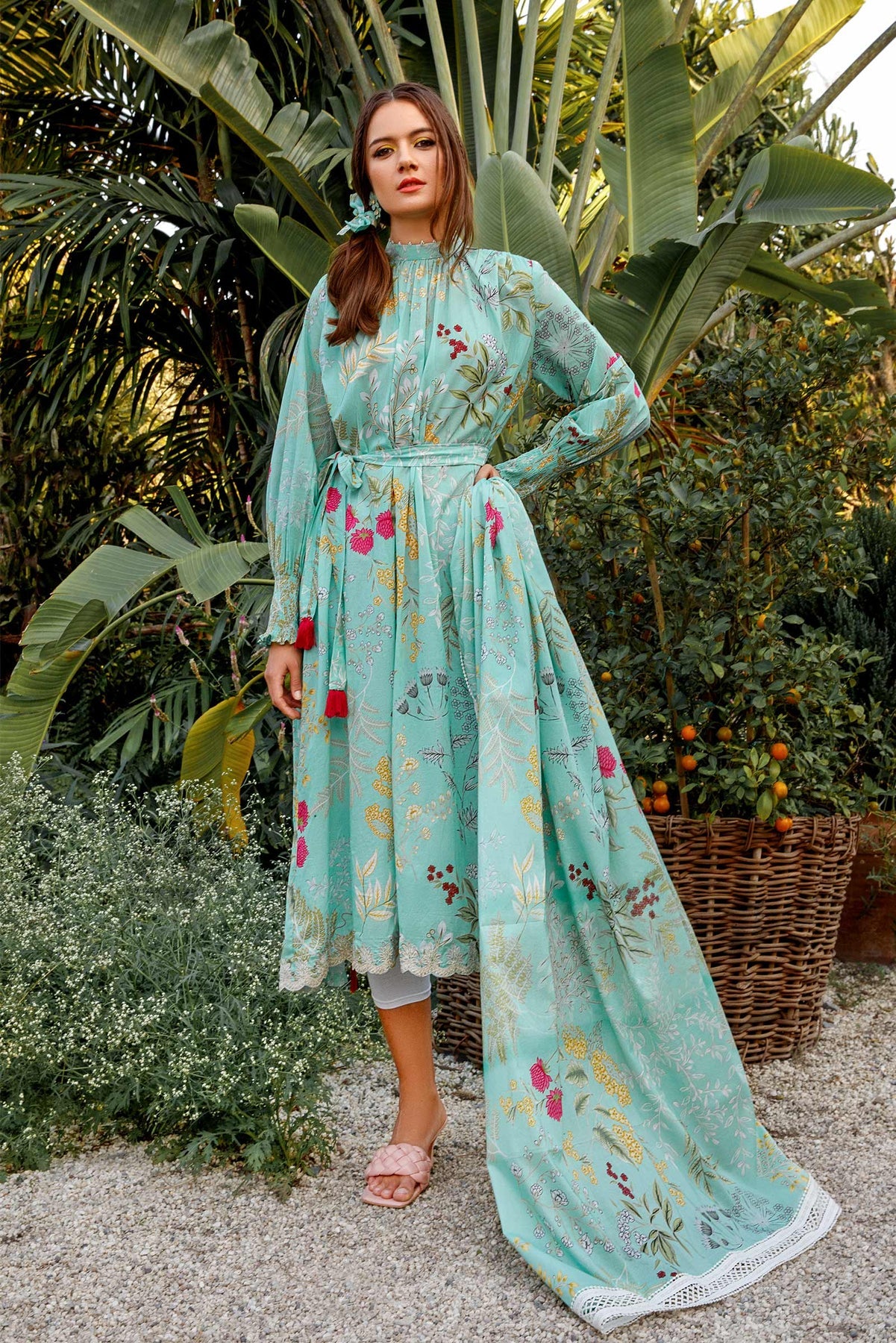 A Chinoiseries-inspired beautifully designed shirt on a sea green lawn canvas with beautiful, embroidered border. Complemented with a lovely matching printed lawn dupatta. That will enhance your everyday look.