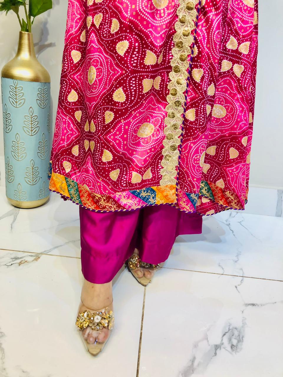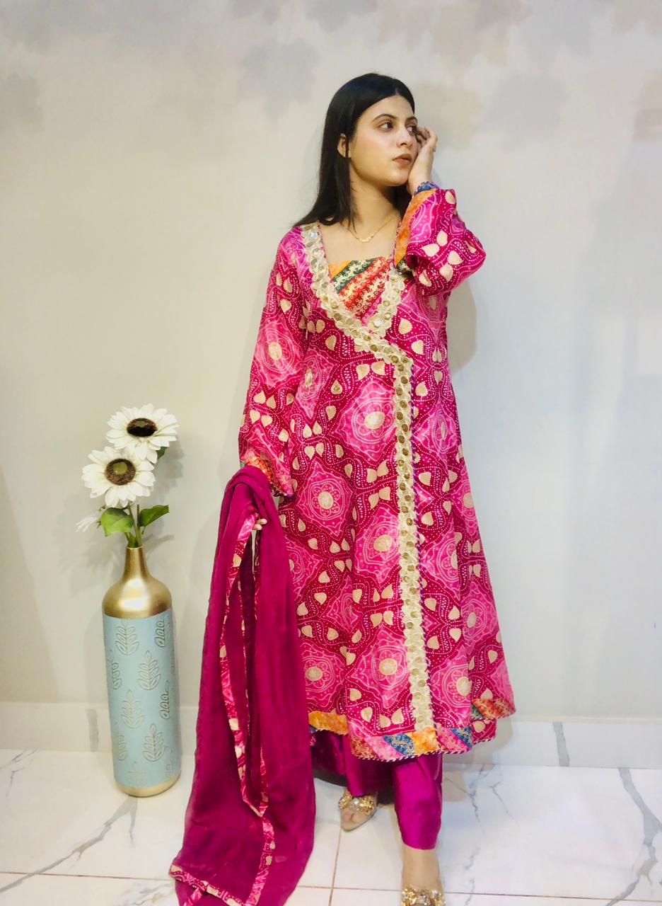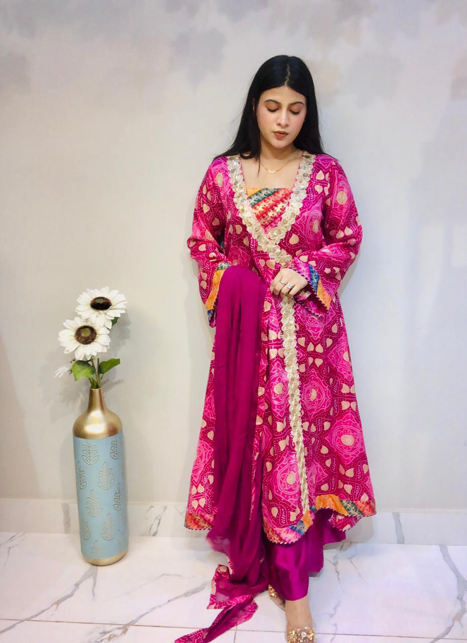 Drape yourself in the allure of tradition with our "Chunri Charm" ensemble. This 3-piece delight, crafted from luxurious pink silk and meticulously stitched for a flawless fit, is a celebration of grace and elegance.