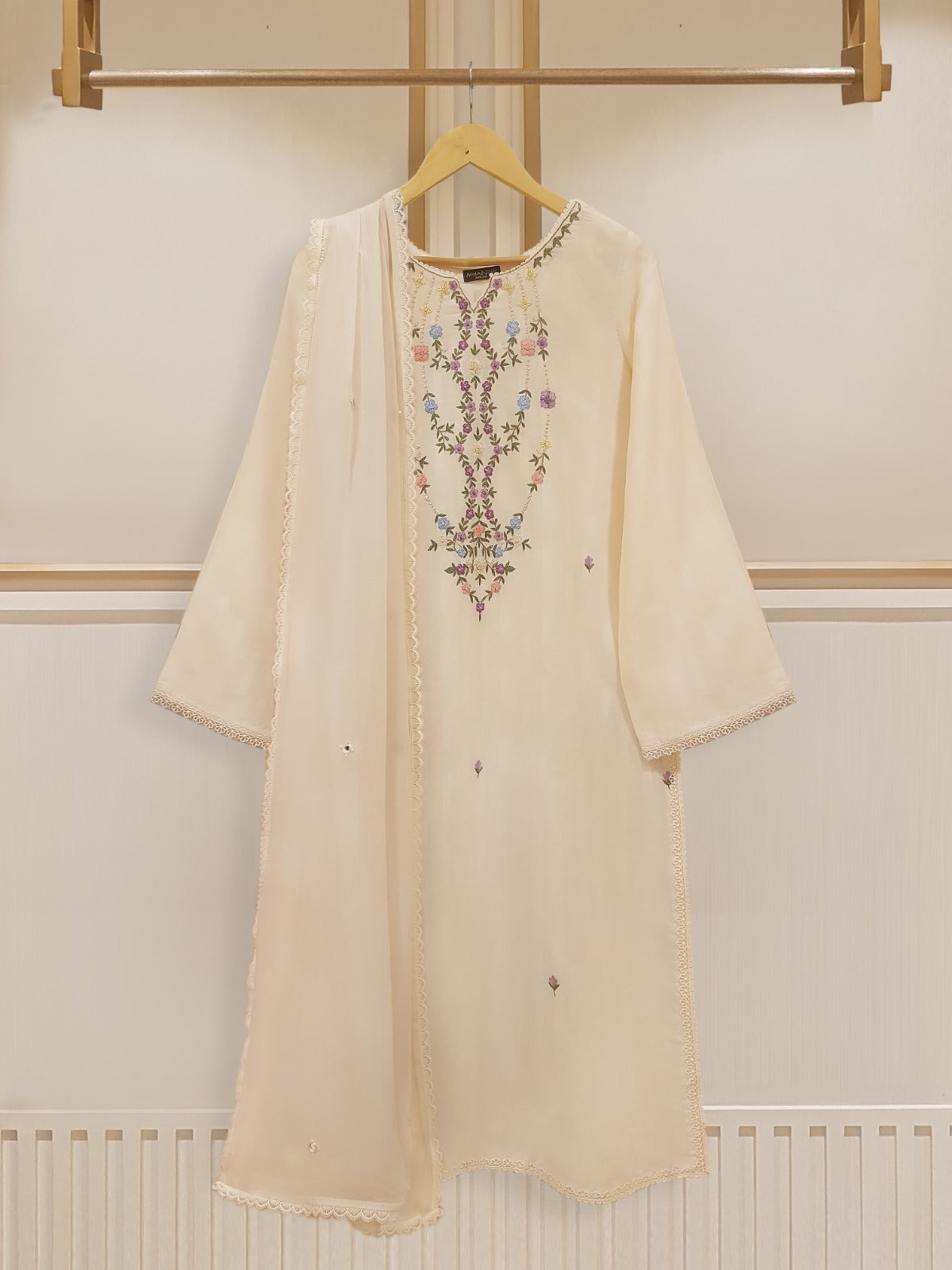 Elevate your style with our "Cream Jacquard Elegance 3PC Set." This stunning ensemble features a beautifully crafted jacquard lawn embroidered shirt that exudes timeless elegance. Paired with beautiful dupatta, it offers a perfect blend of traditional and contemporary. Step out in style and make a statement with this exquisite outfit.