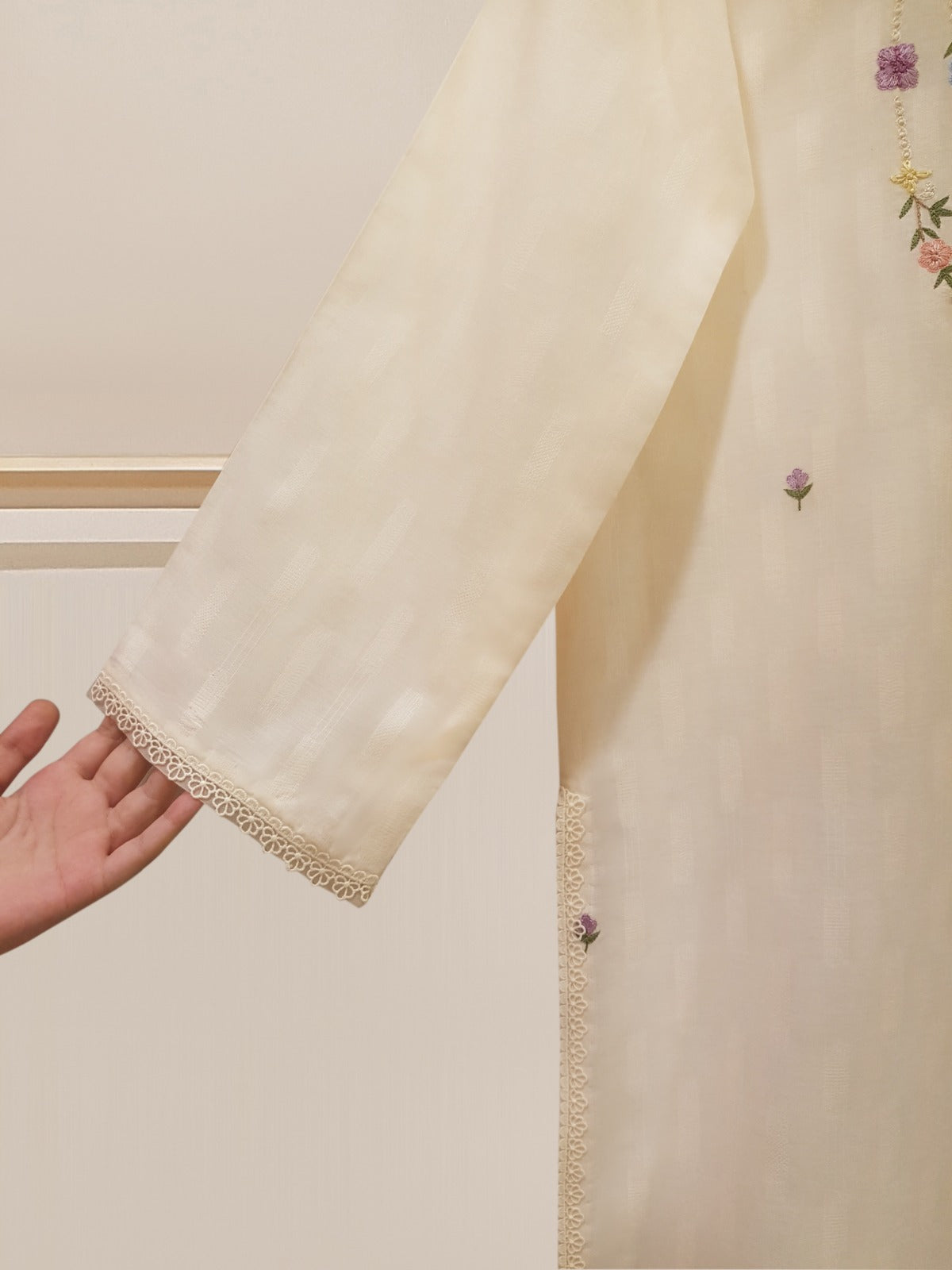 Elevate your style with our "Fine Jacquard Embroidered Cream 3-Piece Ensemble" from the Agha Noor casual collection. This exquisite ensemble features a finely crafted jacquard embroidered shirt in a timeless cream hue. The intricate embroidery adds a touch of elegance and charm to your outfit. Paired with a matching dupatta, this ensemble is the epitome of grace and sophistication. Whether it's a special occasion or a casual outing, this ensemble is perfect for making a statement with your fashion choices.