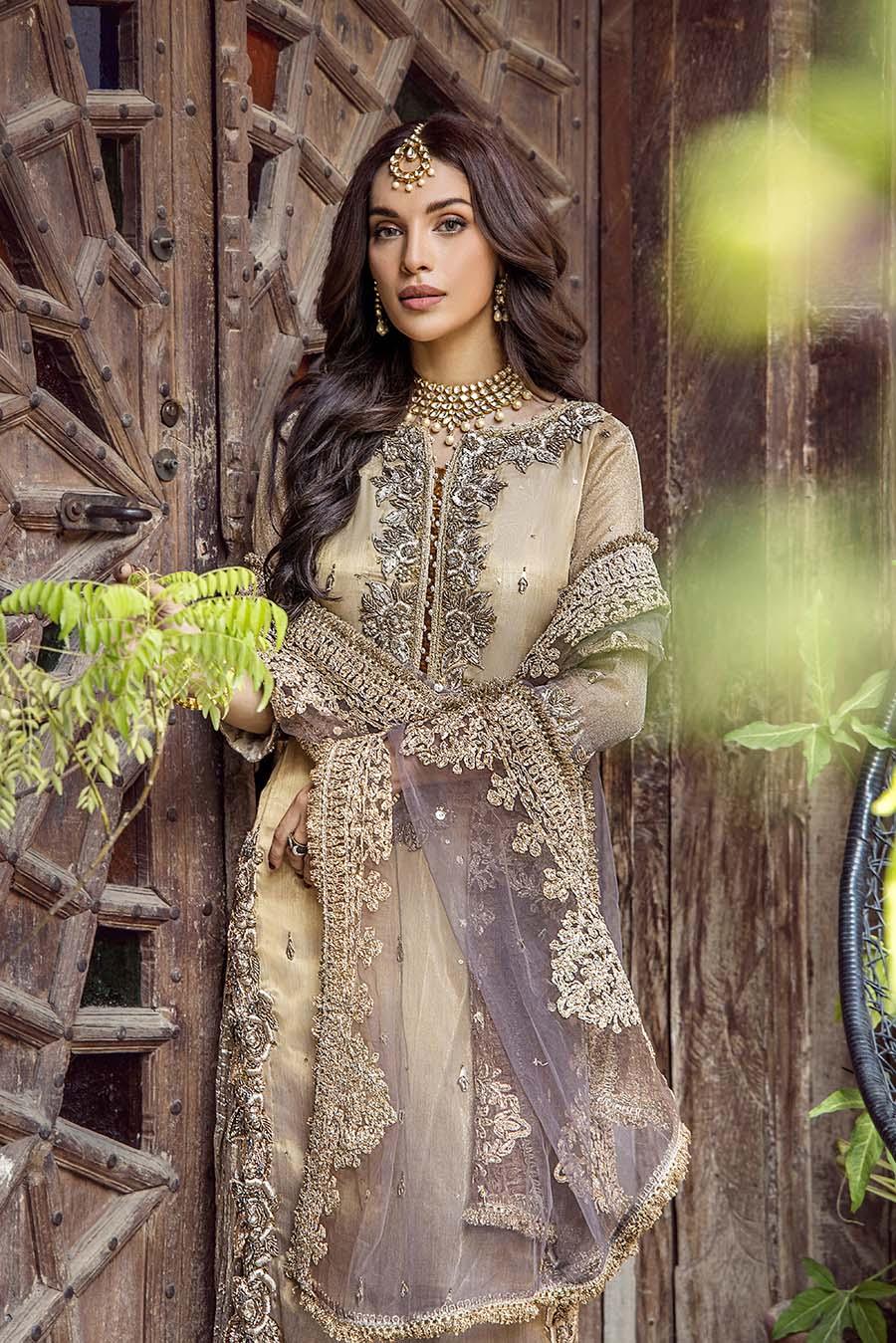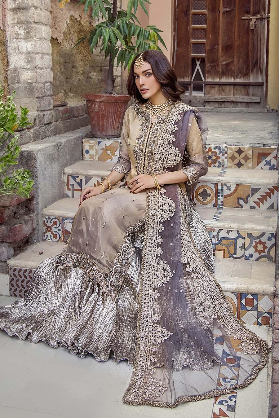 Unveiling elegance woven in tradition and styled for today!  Embrace the fusion of heritage embroidery based on Kora, Dabka, Gotta and 3D work on Mesuri on top part and embellishment of Gotta and Laces on Net and Organza at flare part. Your perfect pick for celebrations that demand timeless grace.