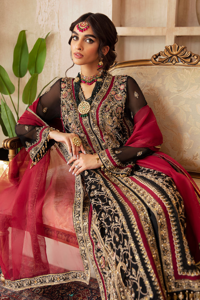 Illuminate your evening with the "Midnight Rose" ensemble. This elegant three-piece set features a rich, deep-hued chiffon shirt adorned with intricate embroidery, a matching chiffon dupatta, and coordinating bottoms. Perfect for formal events and special occasions, its sophisticated design and refined details create a stunning, timeless look.