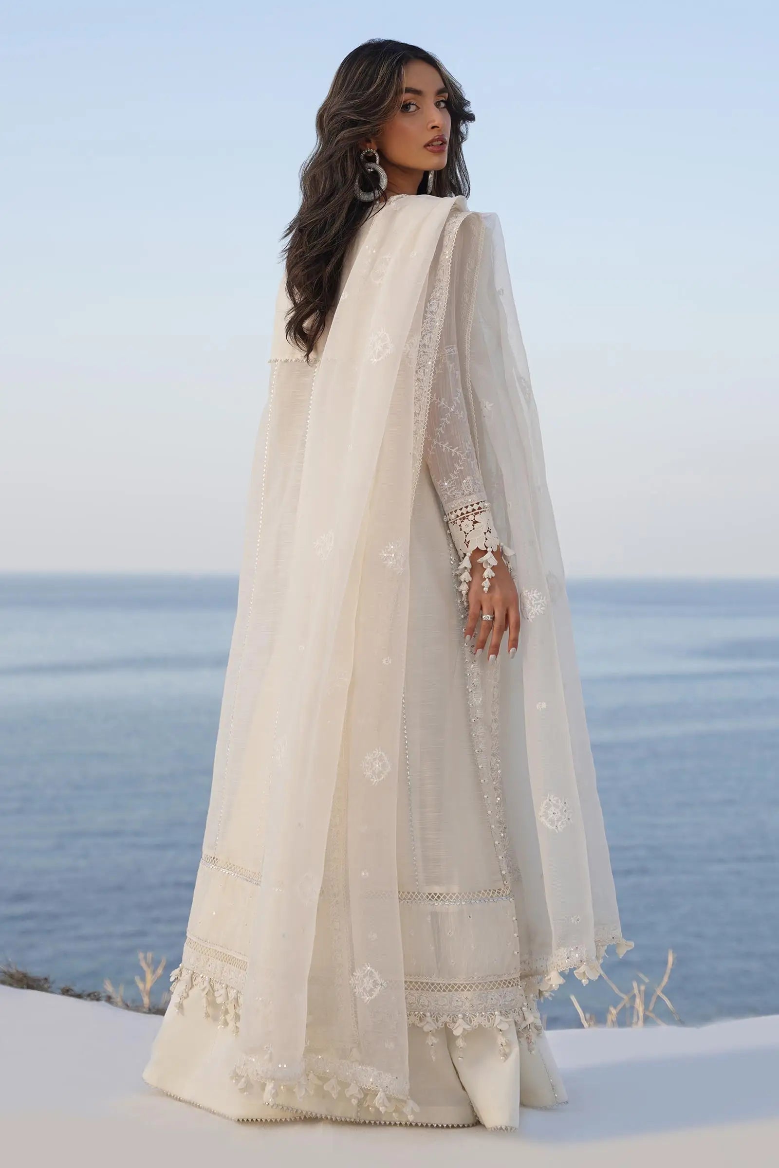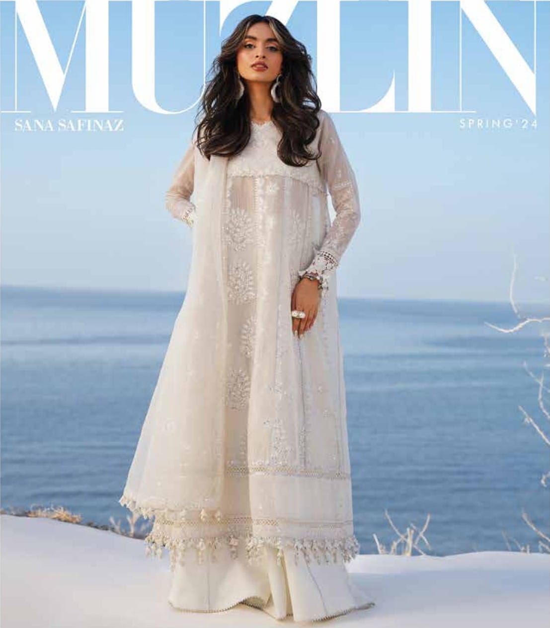 A woven net canvas adorned with mesmerizing motifs radiates an aura of cultural magnificence. Paired with cotton pants and an embroidered dupatta, it exudes a harmonious fusion of artistic expressions.