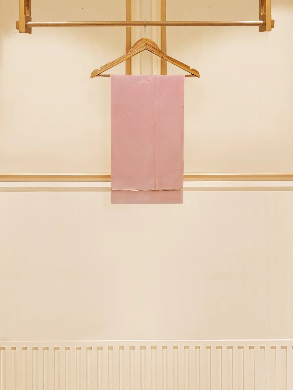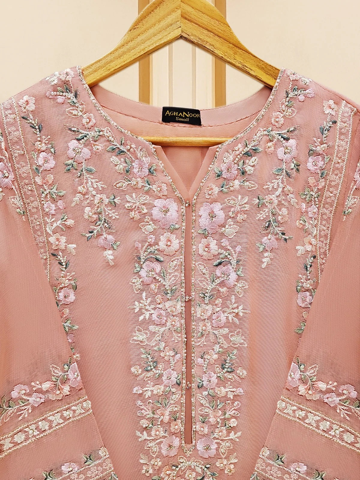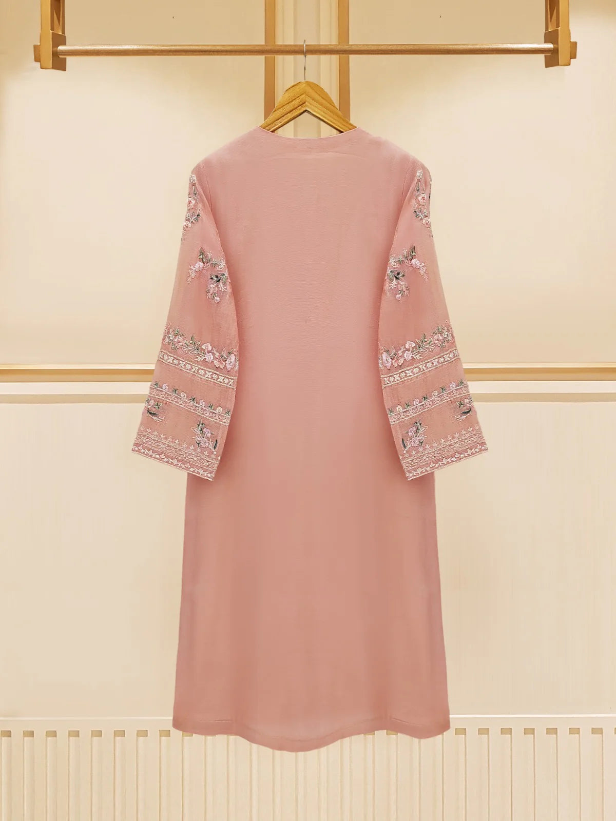 Peach Blossom Elegance: Pure Cotton Net Embroidered 3-Piece Suit (S109574)