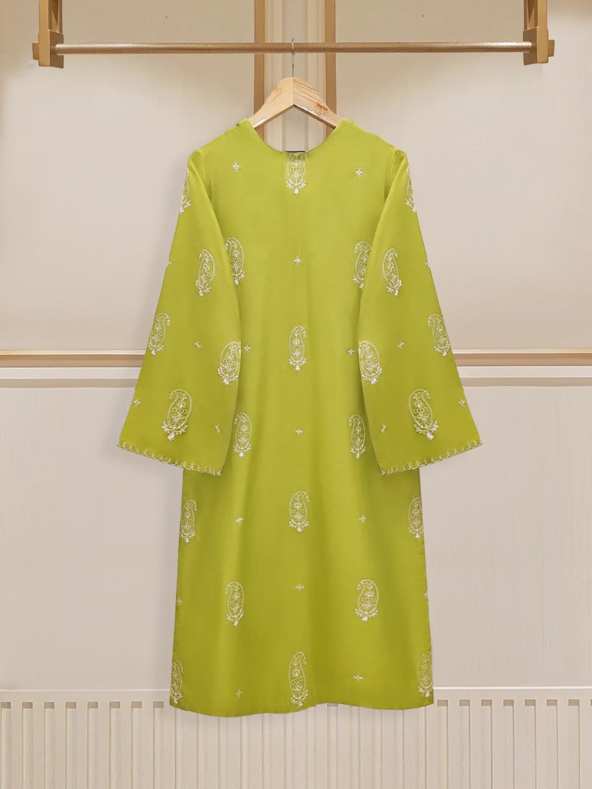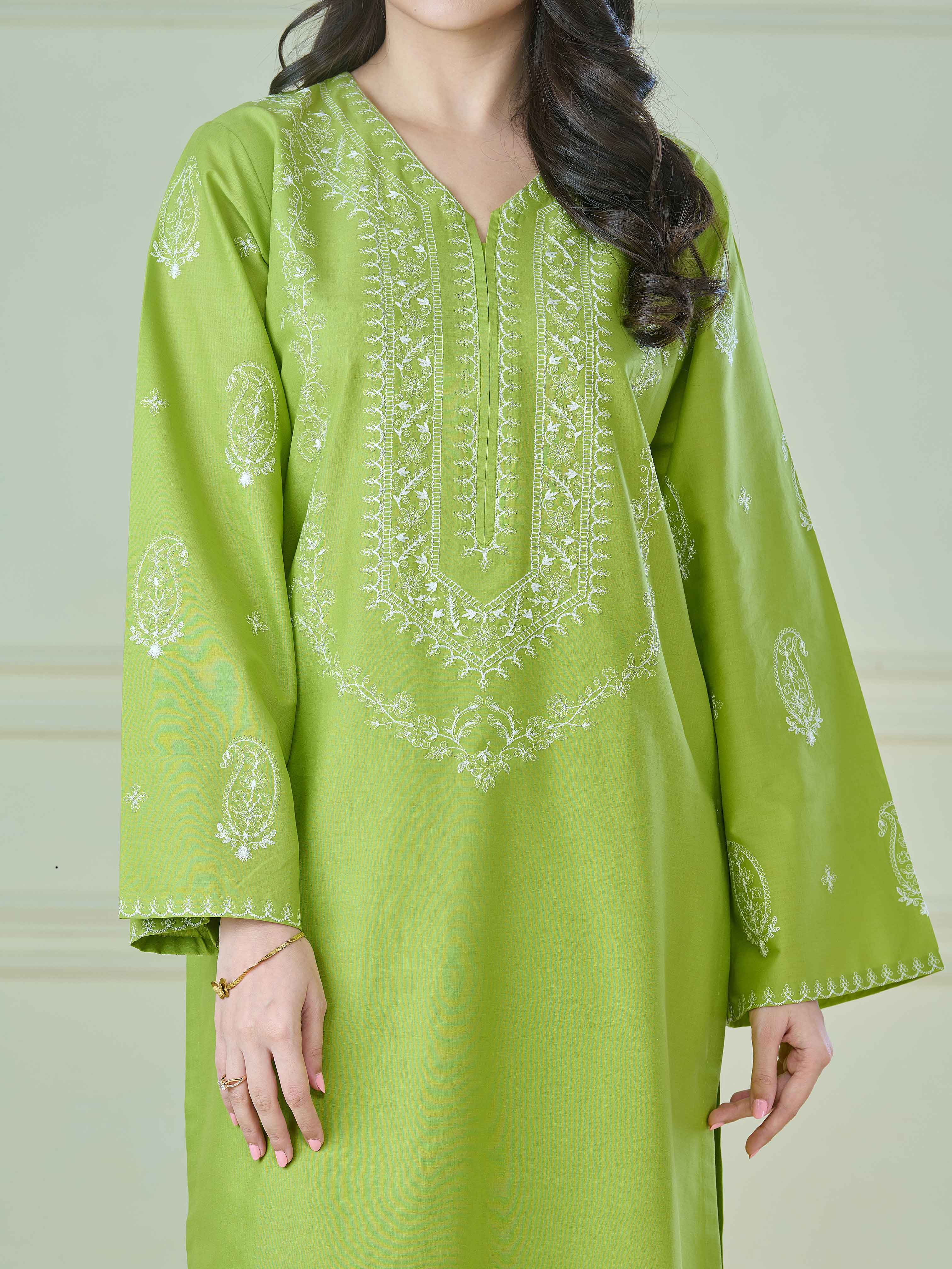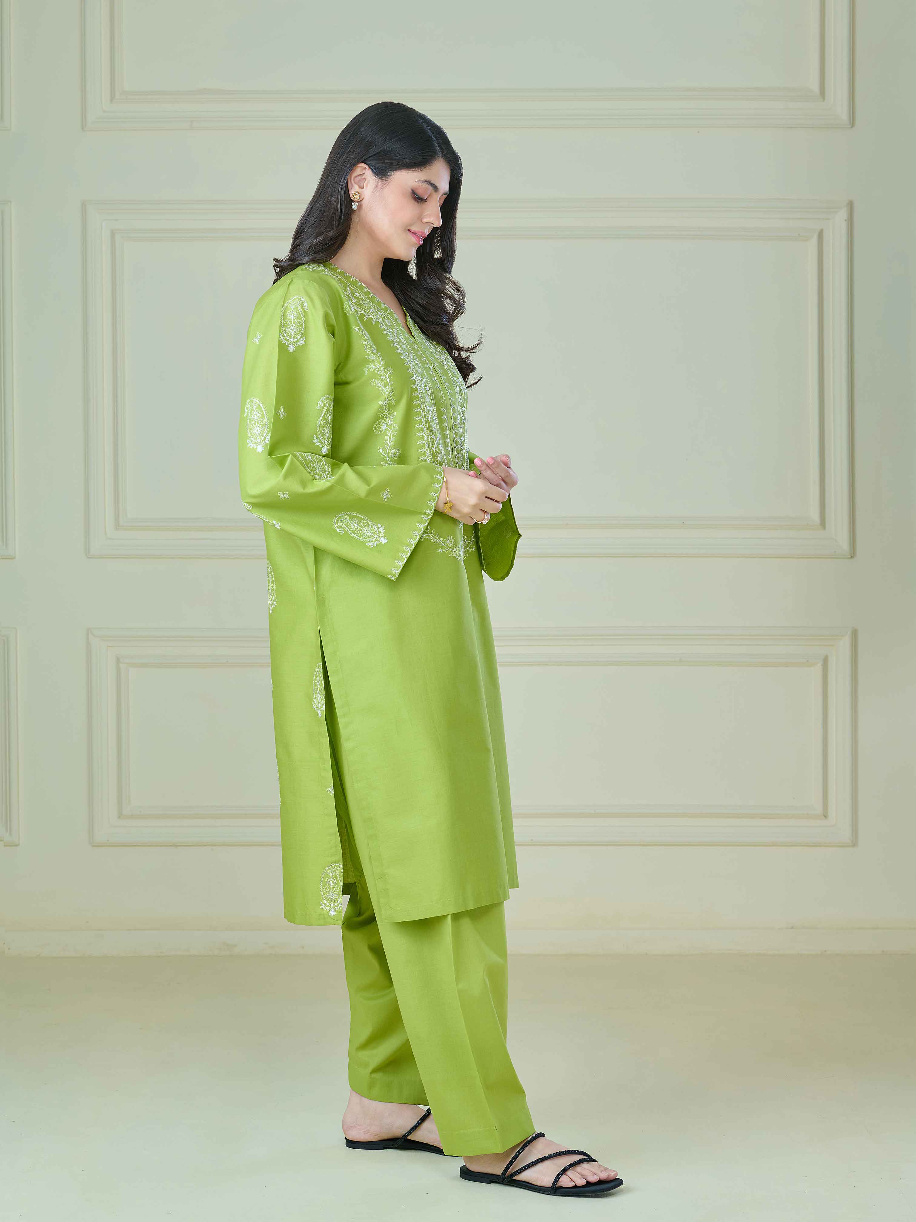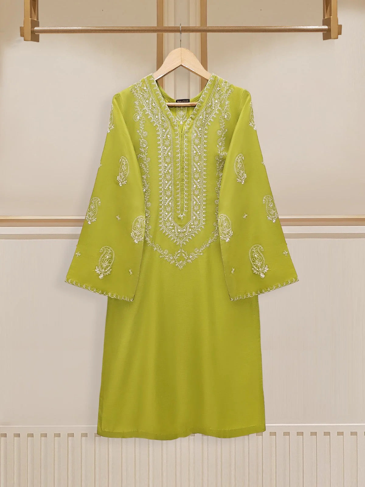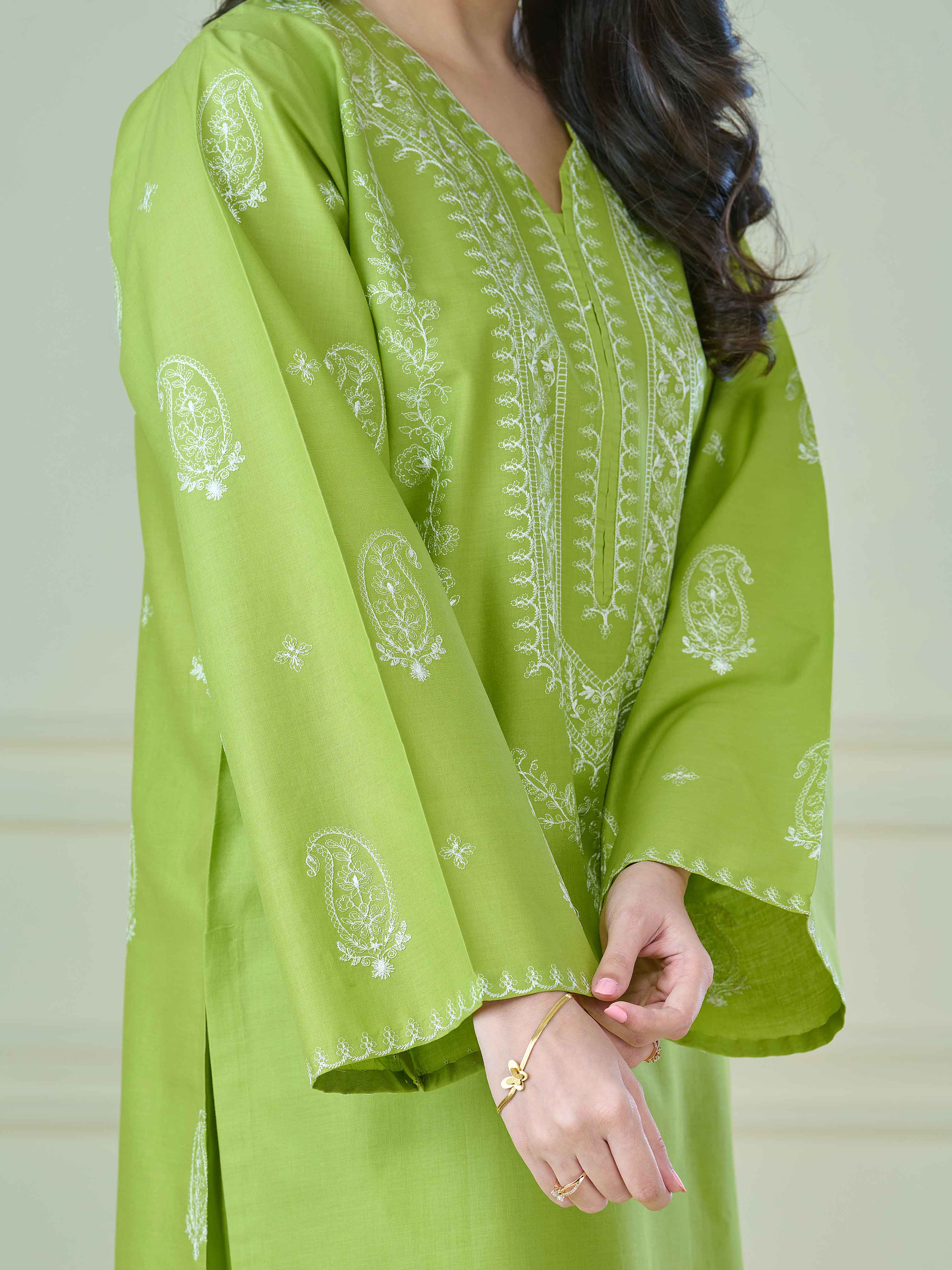 Crafted from pure, high-quality cambric fabric, this embroidered green shirt elevates any outfit with its intricate detailing. Perfect for all occasions, this shirt exudes elegance and sophistication that will leave a lasting impression. Made with precision and expertise, this shirt is a must-have in any wardrobe.