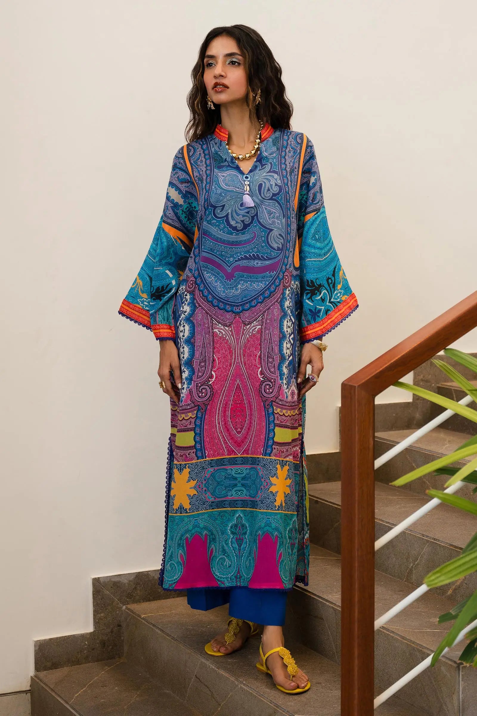 Whispers of tradition in dynamic hues spun into a lawn tale, now in a stunning blue color. This elegant 2-piece ensemble by Sana Safinaz beautifully merges cultural heritage with modern design elements, making it an essential addition to your summer wardrobe.
