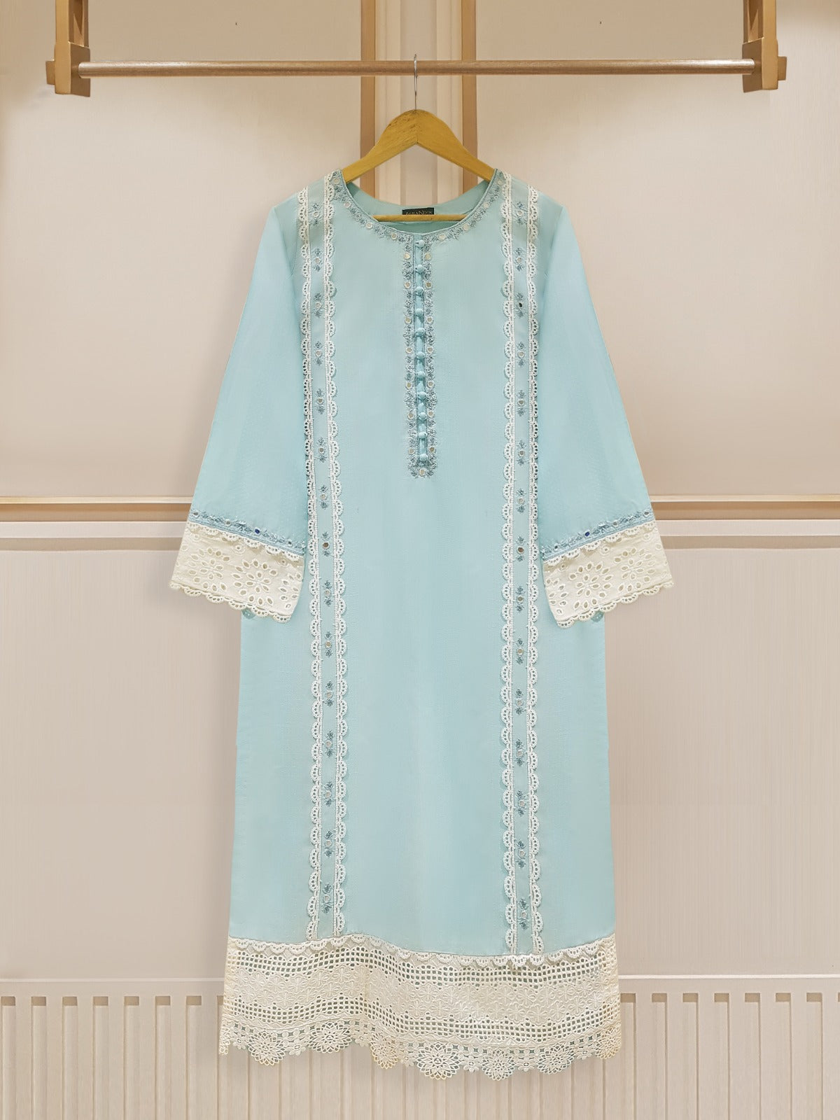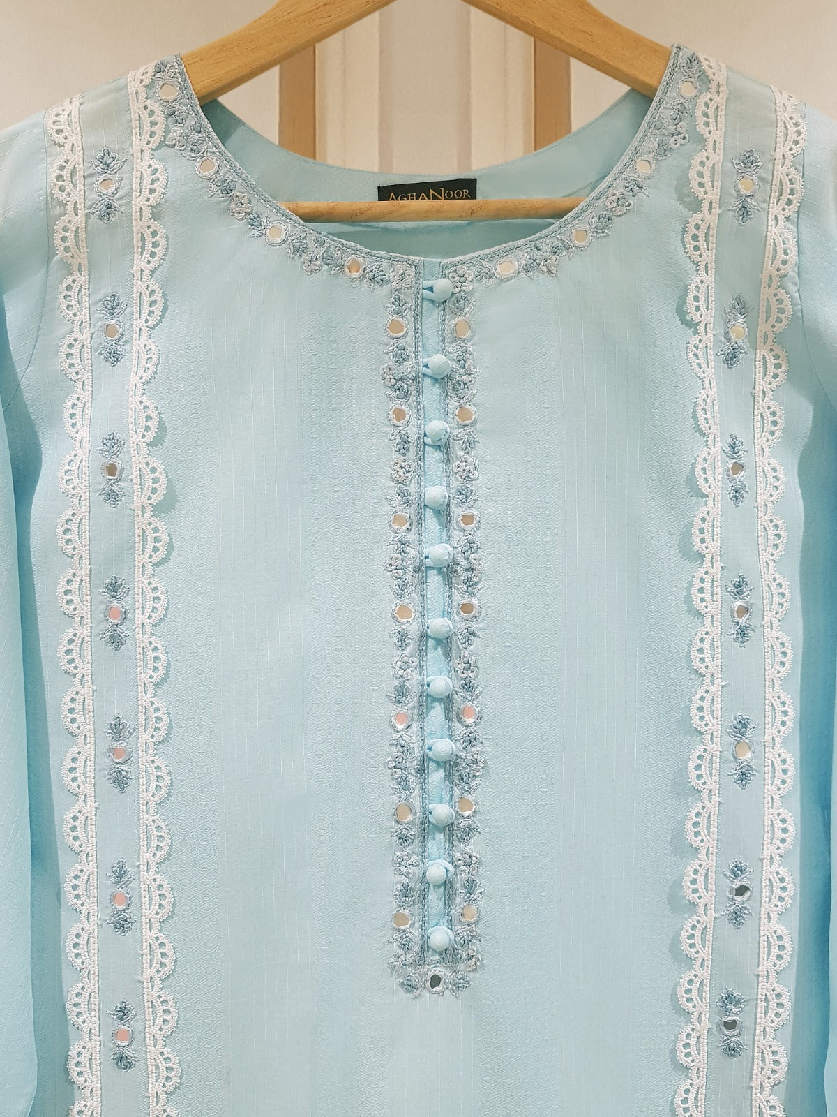 Elevate your style with our "Sky Blue Fine Jacquard Embroidered Shirt." This exquisite piece stands out in its timeless sky-blue hue. The fine jacquard fabric is meticulously embroidered, adding an elegant touch to your attire. Ideal for a variety of occasions, this shirt exudes charm and sophistication, making it a versatile addition to your wardrobe.